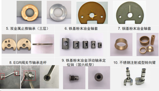 長沙波德冶金材料有限公司主要產(chǎn)品包括止推軸承、浮動(dòng)軸承支撐套、止推軸承擋板、止推墊片、含油軸承等,主要應(yīng)用車用、船用、坦克和步兵戰(zhàn)車等三大應(yīng)用方向的渦輪增壓器粉末冶金軸承和黃銅合金軸承上。如下圖所示: