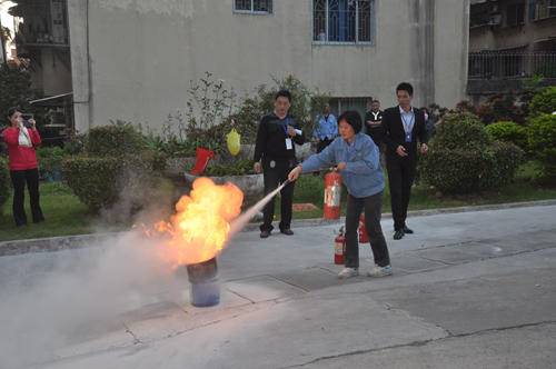 緊接著指揮人員讓參加演練的人員在大樓前集中,教官現(xiàn)場講解和演示用干粉滅火器滅火的要領(lǐng),并讓參演人員使用干粉滅火器現(xiàn)場滅火體驗(yàn)。演練結(jié)束后,安全管理部人員就本次演練活動(dòng)進(jìn)行了分析和小結(jié)。