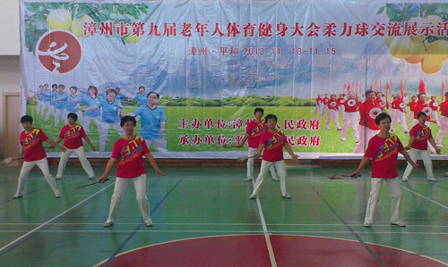 由漳州市政府主辦,漳州市體育局、漳州市老體協(xié)承辦的四年一屆的漳州市第九屆老年人體育健身大會(huì)于2013年10~11月圓滿舉行。本屆老健會(huì)本著“參與、交流、展示、發(fā)展”的宗旨,設(shè)置了門球、地?cái)S球、氣排球、柔力球、乒乓球、臺球、中國象棋、圍棋、橋牌、太極拳(劍)、健身秧歌、健身腰鼓、釣魚等13個(gè)項(xiàng)目,充分體現(xiàn)了老年人參加競技體育的特點(diǎn),共有30多個(gè)單位2500多名人員參加了大會(huì)。