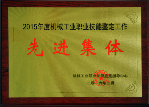 公司榮獲“2015年度機械工業(yè)職業(yè)技能鑒定工作先進集體”稱號