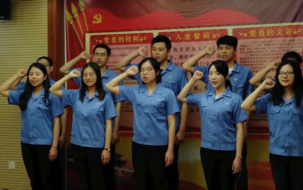 雖然各位團員已對團歌了然于心,但他們還是認認真真地、在專業(yè)人員的指導(dǎo)下練習(xí)合唱、參與彩排。拍攝之日,團員們已經(jīng)能夠雄赳赳、氣昂昂、有節(jié)奏感地唱出團歌,氣氛慷慨激昂、振奮人心,展現(xiàn)了 “青春在奉獻中閃光,理想在拼搏中飛揚”共青團精神。拍攝結(jié)束,團員們在黨團活動中心重溫了入團誓詞。