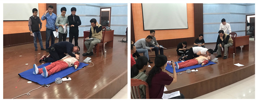 楊老師首先細致講解了紅十字運動的相關知識、急救的原則、人體的構造及機能、各類常見急癥和意外傷害的急救方法、人體各主要部位創(chuàng)傷的救護方法以及常見突發(fā)事件的應急措施等理論知識。