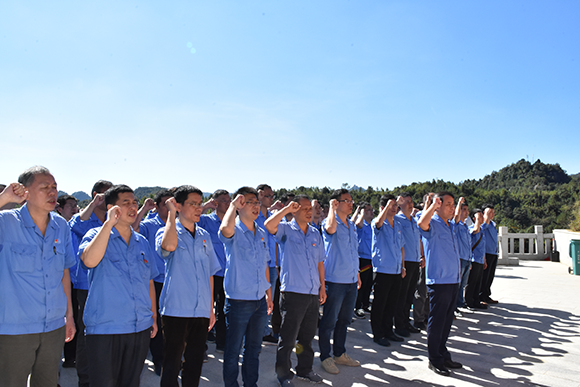 ????大家懷著崇敬的心情,邁上99級臺階,來到車本村的紅軍烈士陵園前敬獻(xiàn)花籃,瞻仰了烈士群雕并向烈士三鞠躬,表達(dá)對革命烈士的緬懷和敬意。接著,在陳晉輝同志領(lǐng)誓下,全體黨員重溫入黨誓詞,再次接受黨性的洗禮,表達(dá)了為黨的事業(yè)奮斗終生的決心。