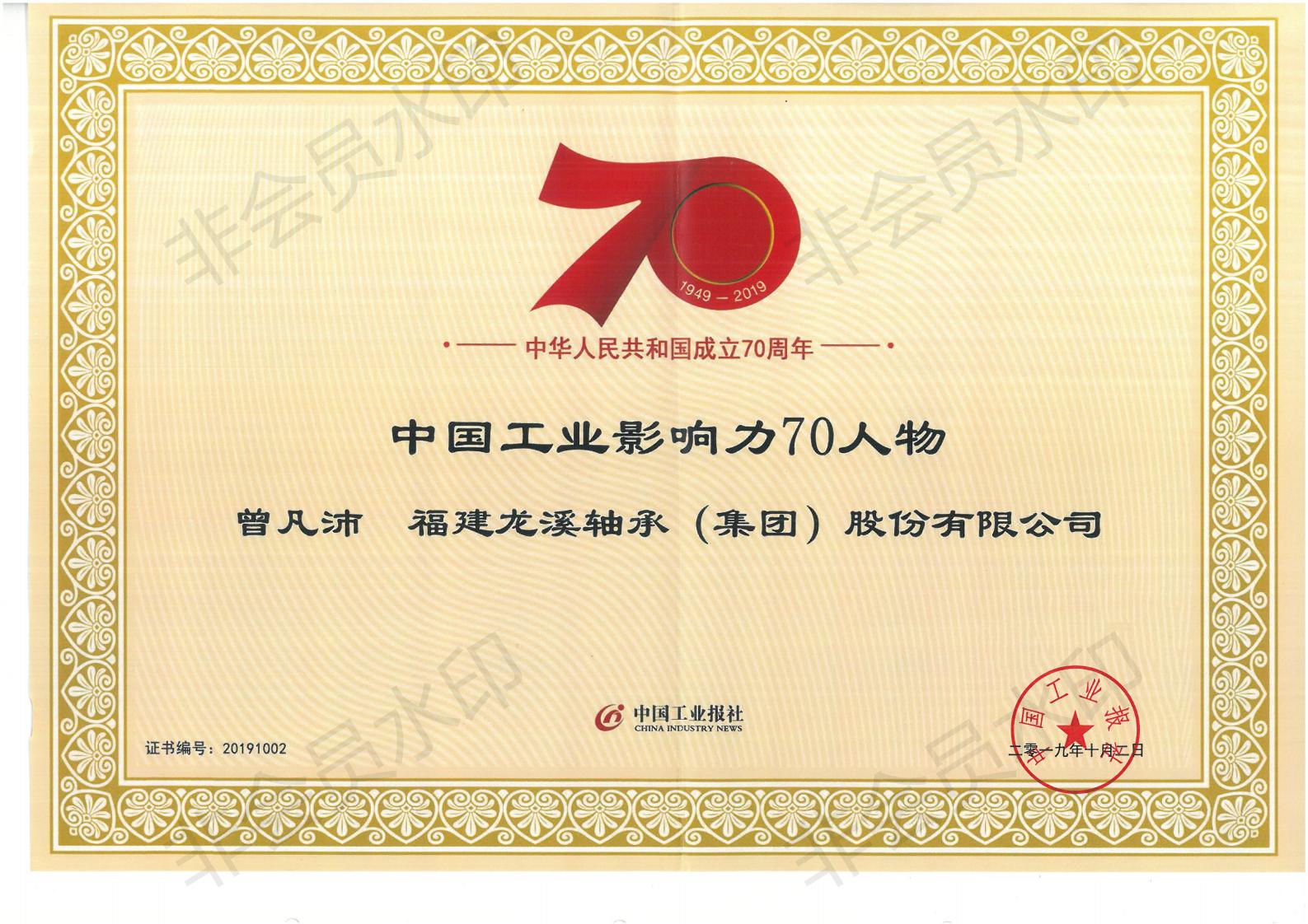 ????會議表彰了中華人民共和國成立70周年中國工業(yè)影響力70企業(yè)、70品牌、70人物,薈萃了新中國成立70年來中國工業(yè)企業(yè)從無到有、從小到大、從弱到強并最終成為世界一流的優(yōu)秀工業(yè)企業(yè)、人物、品牌。公司黨委書記、董事長曾凡沛榮膺“中華人民共和國成立70周年中國工業(yè)影響力70人物”。