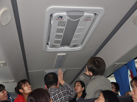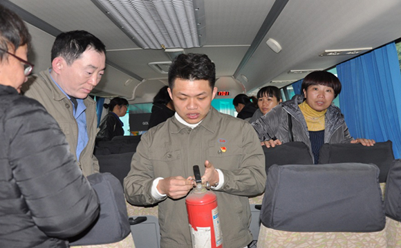 首先由大巴車駕駛員講解大巴應(yīng)急門、車頂窗的開啟方法、安全錘的使用方法及滅火器擺放位置,然后由環(huán)安部安全員講解滅火器的操作及使用規(guī)范和后窗玻璃逃生方法。現(xiàn)場演練模擬公司通勤廠車因故障著火并迅速蔓延,車廂內(nèi)濃煙滾滾,車門因電氣故障無法打開,大巴駕駛員立即打開應(yīng)急車門,組織乘車員工有序撤離,同時向綜合部主管報告事故情況。綜合部主管判斷現(xiàn)場情況后,立即啟動《綜合應(yīng)急預(yù)案》,組織各應(yīng)急救援小組立即趕赴現(xiàn)場,展開應(yīng)急響應(yīng)。