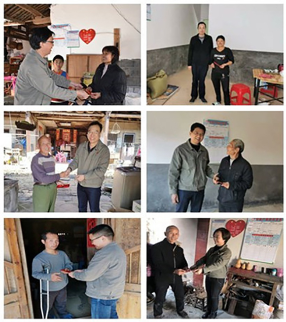 活動(dòng)中,公司幫扶干部在公司派駐坪東村任第一書(shū)記曾鎮(zhèn)明同志和其他村干部的帶領(lǐng)下,挨家挨戶走進(jìn)貧困戶家里,詳細(xì)了解其生活和工作情況,致予節(jié)日問(wèn)候,并為每戶貧困戶送上幫扶干部個(gè)人慰問(wèn)金600元,44戶共26400元。