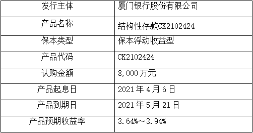?委托理財產(chǎn)品名稱:結構性存款CK2102424。