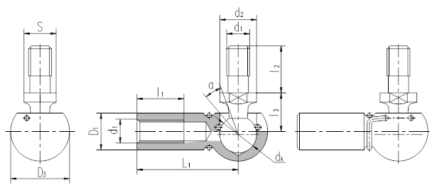 球頭座桿螺紋也可為左旋,若是左旋,軸承型號(hào)和螺紋標(biāo)記需加“L”和“左”,例如:SQGL5  M5左-6H。