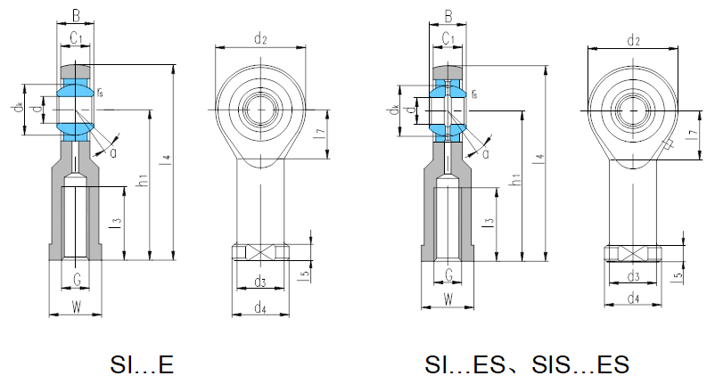 產(chǎn)品特點(diǎn):組裝桿端關(guān)節(jié)軸承由桿端體和向心關(guān)節(jié)軸承GE…E或GE…ES組裝而成,桿端體材料是碳鋼,表面鍍鋅;除型號(hào)后置代號(hào)為E外,其余型號(hào)可通過(guò)油杯或桿端眼孔潤(rùn)滑。