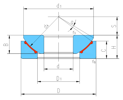 d | D | B | C | H | dk | S | d1 max | D1 min | rs,r1s min | α? ≈ | 動載荷 Dynamic | 靜載荷 Static | ||