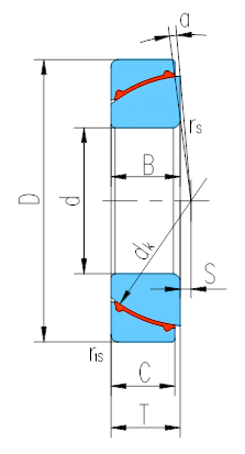 d | D | B | C | T | dk | S | rs,r1s min | α? ≈ | 動載荷 Dynamic | 靜載荷 Static | ||