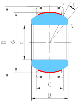 產(chǎn)品特點(diǎn):外圈沿軸向剖分成兩半,用鎖圈固定,外圈材料為軸承鋼,淬火,球面粘貼PTFE編織物;內(nèi)圈材料為軸承鋼,淬火,球面鍍硬鉻,后置代號(hào)有-2RS為外圈兩端帶有密封圈。