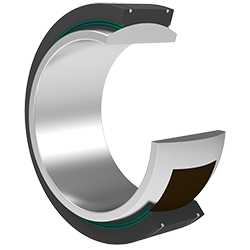 產(chǎn)品特點(diǎn):外圈有一道軸向縫,材料為不銹鋼,淬火,球面粘貼PTFE編織物;內(nèi)圈材料為不銹鋼,淬火。型號(hào)后置代號(hào)為XT,表示外圈沿軸向剖分成兩半,用鎖圈固定。