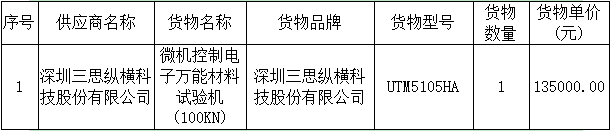 微機控制電子萬能材料試驗機(100KN)采購與安裝中標(biāo)公告