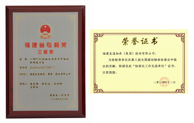 公司前瞻布局未來產(chǎn)業(yè)知識產(chǎn)權(quán),申請專利23項,全年獲授權(quán)專利16項,其中發(fā)明專利13項,數(shù)量創(chuàng)歷史新高,《一種PTFE織物自潤滑關節(jié)軸承的制造方法》榮獲福建省專利獎三等獎。同時公司積極履行全國滾動軸承標準化技術(shù)委員會關節(jié)軸承分技術(shù)委員會秘書處單位職責,主導制修訂ISO、國家、行業(yè)關節(jié)軸承標準20余項,從63家委員單位中脫穎而出,榮獲第八屆全國滾動軸承標委會“標準化工作先進單位”稱號。
