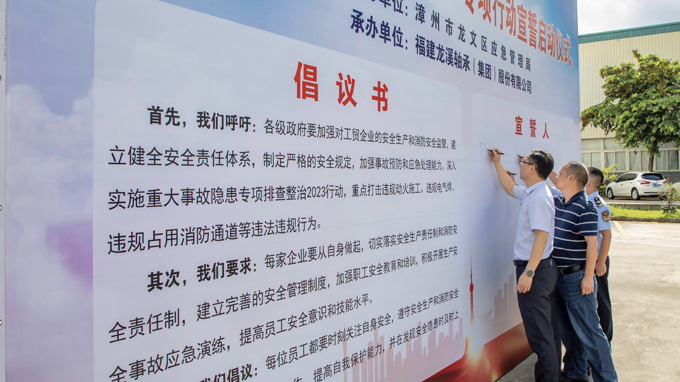 陳志雄首先帶領(lǐng)全體參加人員宣讀《全市工貿(mào)企業(yè)“暢通綠色生命通道”倡議書》,進(jìn)行安全宣誓,并開展“暢通綠色生命通道”專項(xiàng)行動(dòng)簽名活動(dòng)。