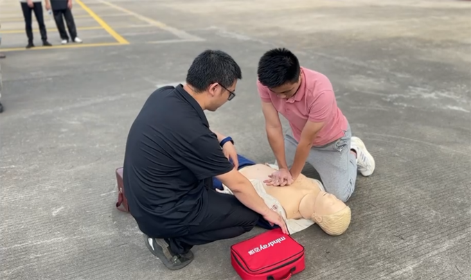 ▲救護(hù)組對(duì)受傷人員實(shí)施心肺復(fù)蘇術(shù)