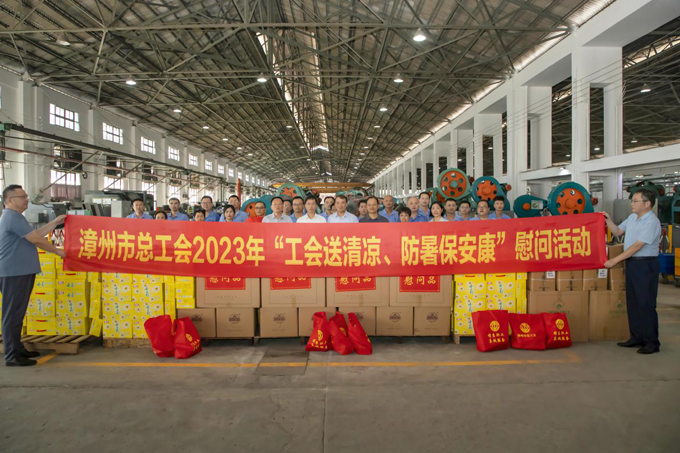 2023年7月14日,漳州市總工會(huì)黨組書記、常務(wù)副主席張哲青,黨組成員、工會(huì)副主席曾景賢帶領(lǐng)漳州市總工會(huì)慰問團(tuán)蒞臨龍軸集團(tuán)開展“工會(huì)送清涼、防暑保安康”慰問活動(dòng)。龍軸集團(tuán)黨委書記、董事長(zhǎng)陳晉輝,黨委副書記、工會(huì)主席劉明福參加慰問。