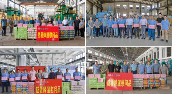慰問過程中,慰問組檢查了車間安全生產(chǎn)情況,詳細(xì)了解高溫下一線員工工作環(huán)境及防暑降溫措施,為他們送去防暑降溫物品,感謝他們的辛苦付出,并反復(fù)叮囑大家在堅(jiān)守崗位的同時(shí)要注意勞逸結(jié)合,預(yù)防高溫中暑。
