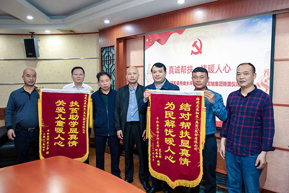 2021年4月19日,漳州市平和縣秀峰鄉(xiāng)坪東村村支書、村長(zhǎng)及坪東小學(xué)校長(zhǎng)一行到公司贈(zèng)送錦旗,感謝公司三年多來(lái)對(duì)他們的幫扶。公司黨委書記、董事長(zhǎng)陳晉輝,黨委副書記劉明福熱情接待坪東村一行。