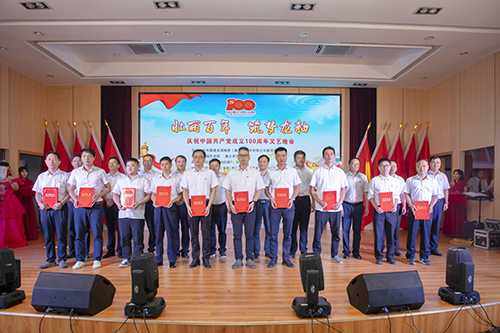 為熱烈慶祝中國(guó)共產(chǎn)黨成立100周年,謳歌黨的豐功偉績(jī)和偉大成就,展現(xiàn)在黨的領(lǐng)導(dǎo)下龍軸自強(qiáng)不息、闊步前行的精神風(fēng)貌,2021年6月29日晚,由公司黨委主辦、龍軸藝術(shù)團(tuán)及春之聲藝術(shù)團(tuán)協(xié)辦的“壯麗百年 筑夢(mèng)龍軸”慶祝中國(guó)共產(chǎn)黨成立100周年文藝晚會(huì)在藍(lán)田三廠區(qū)龍軸集團(tuán)大禮堂隆重舉行。漳州市政府辦副主任吳維桑、漳州市國(guó)資委黨委委員、二級(jí)調(diào)研員盧宗金、九龍江集團(tuán)黨委副書記魏育健等嘉賓,公司黨委書記、董事長(zhǎng)陳晉輝及領(lǐng)導(dǎo)班子其他成員出席晚會(huì),黨總支、黨支部負(fù)責(zé)人,中層干部、業(yè)務(wù)主管及“兩先一優(yōu)”代表等參加。