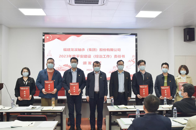 2023年3月16日,龍軸集團舉行平安建設(綜治工作)責任書簽訂頒發(fā)儀式。公司黨委書記、董事長陳晉輝,黨委副書記劉明福分別與在漳權屬企業(yè)和各部門、車間負責人簽訂責任書,陳晉輝和公司黨委副書記、總經(jīng)理陳志雄一同頒發(fā)責任書。