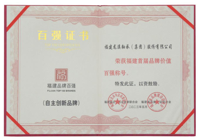 5月7日,福建首屆品牌價值百強榜單發(fā)布會在福建省寧德市舉行,發(fā)布了100個品牌企業(yè)和20個區(qū)域品牌作為福建首屆品牌價值百強榜單,龍軸集團的品牌強度位列福建品牌價值百強第4,品牌價值在自主創(chuàng)新品牌中位居第5。