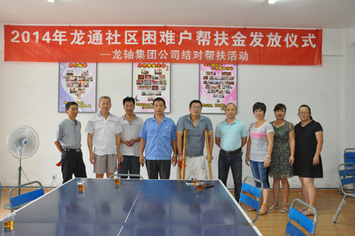 2014年8月8日,公司與薌城區(qū)南坑街道龍通居委會聯(lián)合舉行了“2014年幫扶特困戶幫扶金發(fā)放儀式”。 公司黨委副書記張?zhí)┥跁显俅蜗?012年結對幫扶的5戶龍通社區(qū)困難戶各發(fā)放了3000元的幫扶金,并和他們進行了親切座談。面對受助人員溢于言表的感謝之辭,張?zhí)┥硎荆骸白鳛楦=ㄊ∥拿鲉挝唬瑤ь^開展社會公益事業(yè)是義不容辭的責任。希望你們的生活能有所改善,同時,也希望通過這樣的行動,積極傳播扶危濟困的中華民族傳統(tǒng)美德,讓更多需要幫助的人得到社會關懷!”