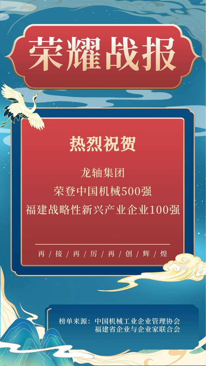 上榜中國(guó)機(jī)械500強(qiáng)、福建戰(zhàn)略性新興產(chǎn)業(yè)企業(yè)100強(qiáng)