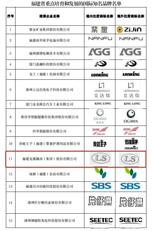 入選福建省重點(diǎn)培育和發(fā)展的國(guó)際知名品牌