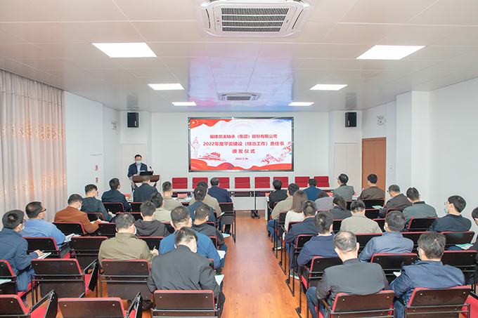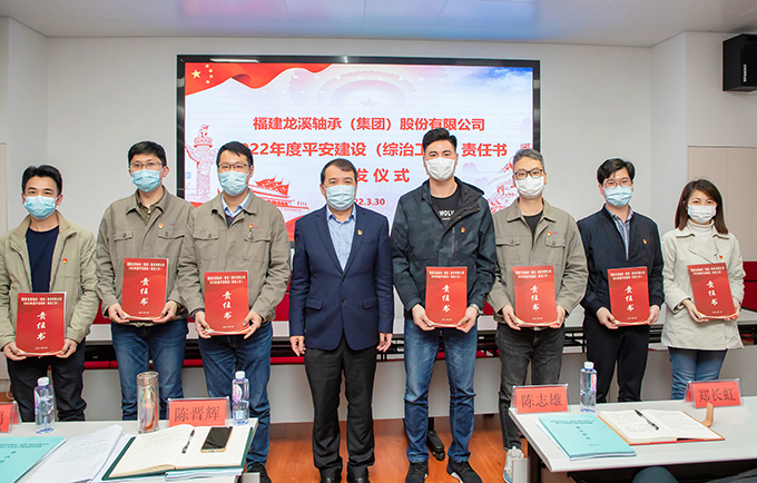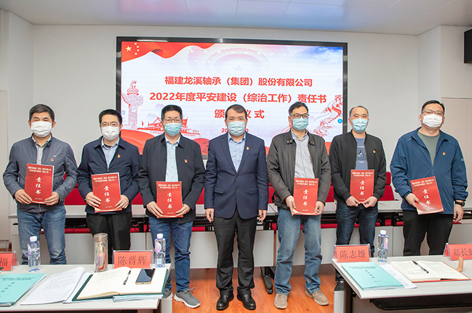 2022年3月30日,龍軸集團舉行平安建設(shè)(綜治工作)責(zé)任書簽訂頒發(fā)儀式。集團黨委書記、董事長陳晉輝分別與在漳權(quán)屬企業(yè)負責(zé)人簽訂了《2022年平安建設(shè)(綜治工作)責(zé)任書》,集團創(chuàng)建“平安單位”分管領(lǐng)導(dǎo)劉明福分別與集團直屬部室、車間負責(zé)人簽訂了《2022年平安建設(shè)(綜治工作)責(zé)任書》。陳晉輝向在漳權(quán)屬企業(yè)、集團直屬部室、車間負責(zé)人頒發(fā)了責(zé)任書。