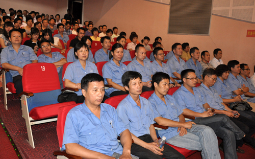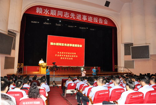 2012年8月14日上午,公司組織各支部書記赴人民劇場參加賴水順同志先進事跡報告會。市領(lǐng)導(dǎo)許榮勇、劉文標(biāo)、黃雙慶、黃浦江、李惜真及市直機關(guān)干部代表、市直政法系統(tǒng)干警代表、企業(yè)單位代表、駐漳部隊官兵代表共700多人參加會議。市委常委、宣傳部長許榮勇主持報告會。