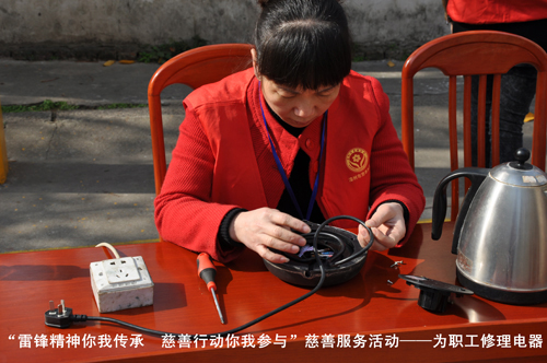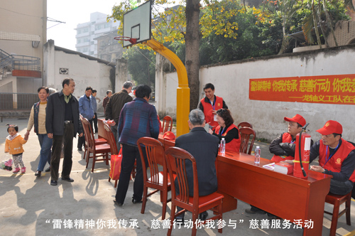 為迎接3月5日第50個“學(xué)雷鋒紀(jì)念日”暨第13個“中國青年志愿者服務(wù)日”的到來,弘揚(yáng)“奉獻(xiàn)、友愛、互助、進(jìn)步”的志愿者精神,進(jìn)一步營造公司志愿服務(wù)的濃郁氛圍,2013年3月4日上午,公司慈善義工分隊(duì)在俱樂部籃球場開展 “雷鋒精神你我傳承 慈善行動你我參與”慈善服務(wù)活動。為社區(qū)居民提供電器檢查維修服務(wù)、健康保健咨詢義診服務(wù)、愛心理發(fā)服務(wù)、防火防盜咨詢服務(wù)等志愿服務(wù)活動。