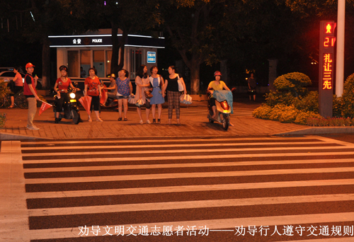 近日,為迎接全國(guó)文明城市和迎接國(guó)家衛(wèi)生城市復(fù)審工作,公司組織志愿者于2013年8月23日晚走上街頭,到市區(qū)人流量、車(chē)流量較大的勝利路和元光路交叉路口進(jìn)行文明勸導(dǎo)志愿服務(wù)活動(dòng)。