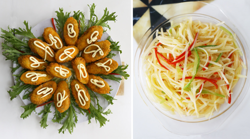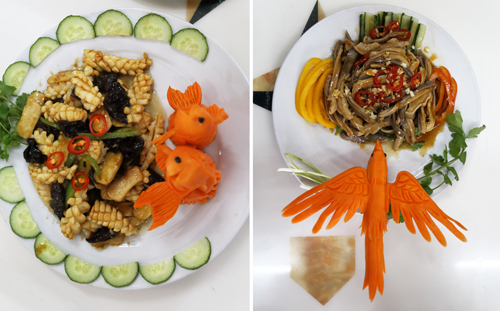 參賽隊員們自帶食材,各顯其能,動作嫻熟,有條不紊,盡顯烹飪能手的風(fēng)采。十八支參賽隊共烹飪出了18道熱菜和18道冷菜的美味佳肴,他們還為每個菜品起了生動的名字,寓意不同,“荷荷美美”寓意家庭和美幸福;“魚躍龍門”彰顯著對職工、對企業(yè)的美好祝愿;“多彩人生”承載著每個職工對工作生活期盼。不僅創(chuàng)意新穎,而且色澤鮮美,味道純正,女工們用自己精心烹飪的美味佳肴互傳友誼,倡導(dǎo)和諧健康生活。
